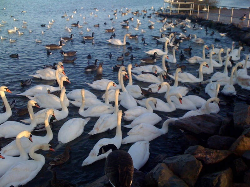 The noise and furry of a large group of swans is a sight to see. It is made worse by the birds expectation to be feed. Pandamonium is let loose when some actually does feed them. Makes taking photos easier though!