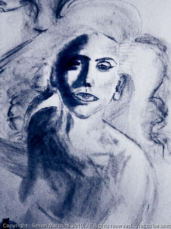 Well where does one end and the other begin? I have no answer to this but at the moment I love the effect I can get from combining the two. This drawing of Lady Gaga was created in the real world and then brought into the digital world by my iPhone. I know I have said this before but the iPhone camera is really powerful – not because of its spec. but rather because of its lack of anything resembling a modern. This adds inaccuracies that to my eye really enhances the drawing.