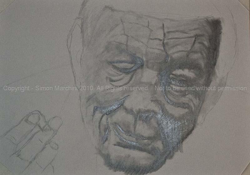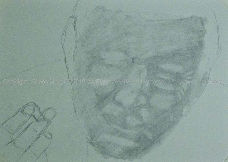 Anyway, I am recording the progress I am making creating this drawing of WH Auden. So far this week I have been concentrating on female beauty and form – two things Auden did not processes – certainly as he grew old. I saw this face the other day and I knew I had to draw it. So far it has taken me the best part of five hours to get to this point and I suspect it is only about a quarter finished. At this rate it should be completed by sometime next week. It really is a challenge and at the same time deeply satisfying. I just hope I don’t screw things up – at least I’ll have the photographs to remind me how much I screwed things up.