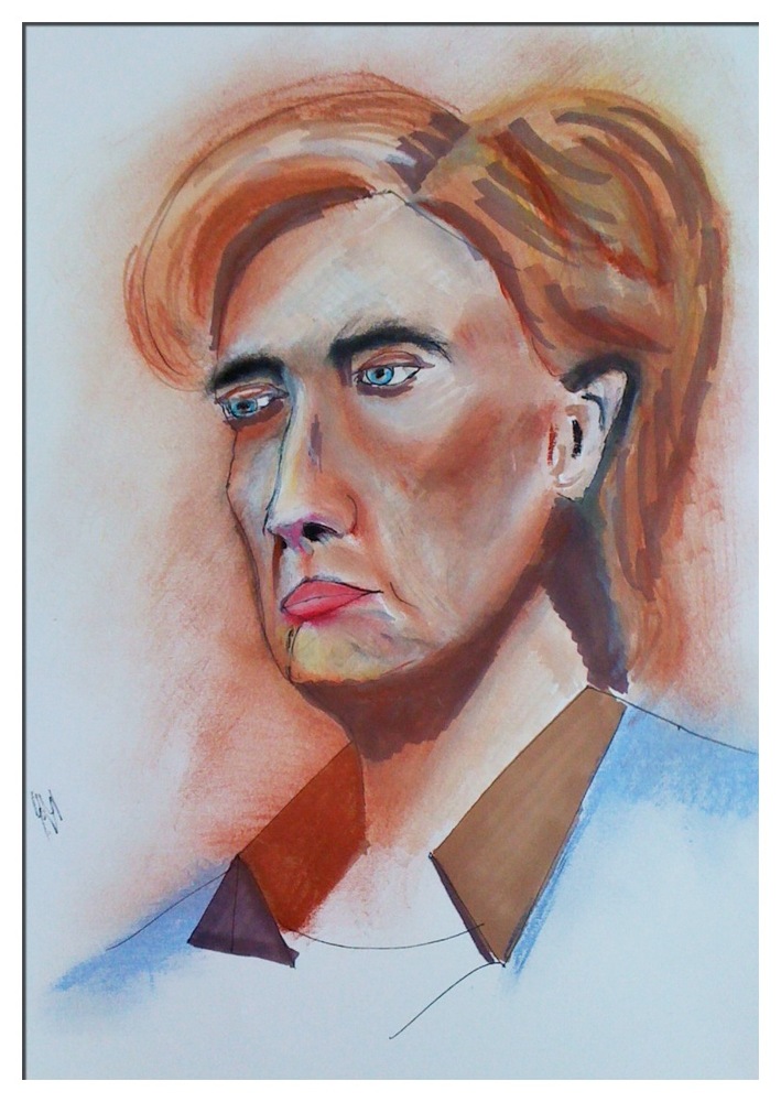 Before Gwyneth there was woman. This is the first attempt to make a drawing using Letraset promakers. The only thing is I added oil pastels and came up with a whole new way, for me, to make a drawing. However, the key mark making technology in this drawing was the choice of using a pen for the initial outline rather than my more usual pencil. This meant that every Mark I made was permanent and so I had to ensure it was exactly where I wanted it to be. To be honest I was intimidated by this and the initial sketch wasn’t as flowing as I would have wanted. However, it does give the drawing a strange ‘Dan Dare’ look but does highlight the importance of mark making, the technology you use and how you, the artist, reacts to the opportunities and restrictions placed on you.