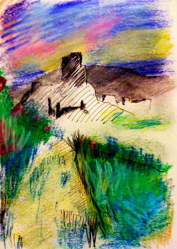 I bought three cheap sketch books the other day and initially I thought I had made a big mistake – it really wasn’t that good for portrait drawing, or at least I couldn’t make it work. However, I have discovered that it is ideal for less delicate work – in this case playing around with pastels and the like. In the digital image made from the sketches the colour has been depended and made more intense – which is an interesting idea for the real drawings. However this is just playing around so. May not take it any further.