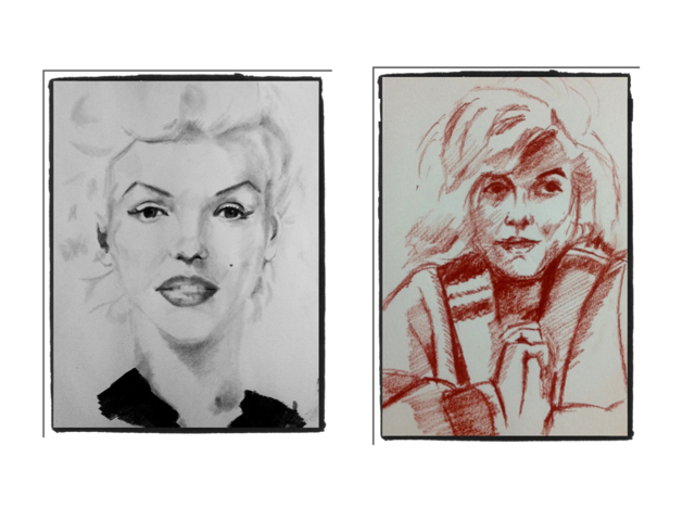 For the rest all we have is the myth based on what? Well a bunch of variable movies and almost limitless images circulating to enforce and enhance the image of a mysterious creature. She really isn’t a human being anymore but semi goddess. So we are served up Marilyn the sex goddess or Marilyn the exploited play thing of a President who is as much a Demi-god as she or perhaps a woman just trying to make her way in a mans world or all of these or none. On a more practical level the week has been a fascinating experience – trying many things before coming to the conclusion that I am, at heart, a really conservative artist who likes nothing better than to sit down with a pencil, graphite or conte, and try to make the best likeness I can. I think I have succeeded in that endeavour in some small way.Sent from my iPad