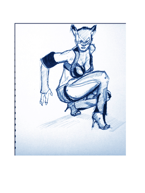 Over the past few weeks I’ve been having one or two problems getting the proportions of a human body correct when drawing free hand. I’ve worked out a new technique and I thought I’d try it out a reasonably complicated pose, in this case cat woman. Early indications are that the new technique might have solved the problem I was having.
