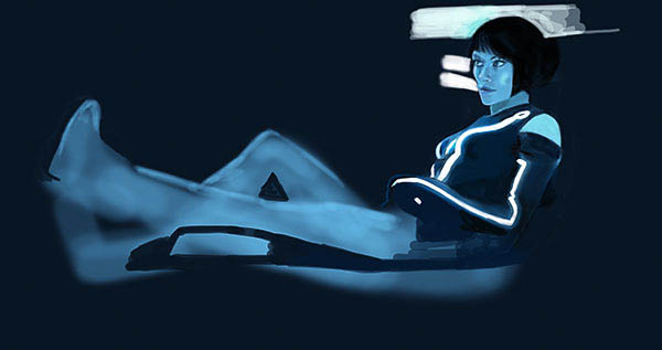 However, sliver linings and all that it has given me time to work on the Tron Legacy painting. Somehow when it is really rubbish outside sitting in a darkened digital studio isn’t quite that bad.