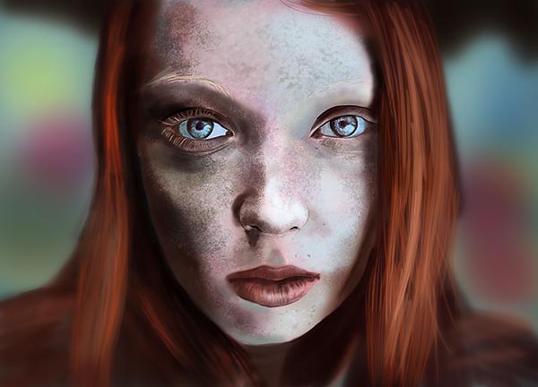 Fascinating portrait! I especially like the way you did the eyes. I must admit that the girl somehow scares me…