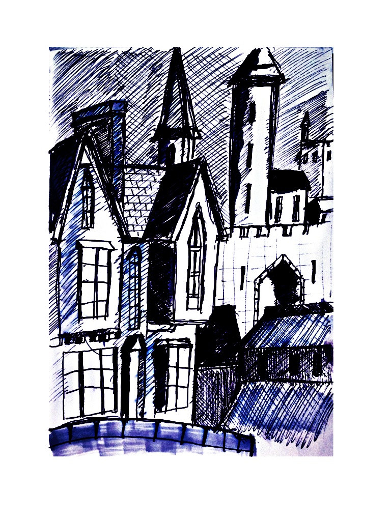 | This morning I felt like making a lithograph so I went into Leicester and made this…I’ve called it Leicester Castle from West Bridge and I think it is one of the most accurate and truthful images I’ve ever made*