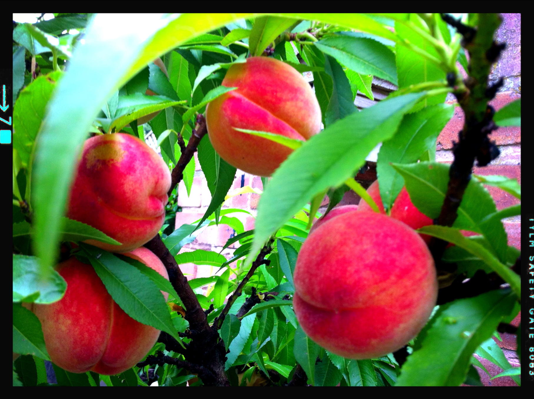 | Won’t be long now before the peaches will be ready to be eaten …yum yum. This small Peach bush is a simply wonderful plant, frost hardy with little need for any protection, (in fact the last winter seemed to do the tree a world of good). So I hope the peaches taste as good as they look.