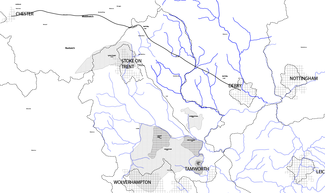 As a result of this book plus all the other leads I’ve been able to start to draw a map of Staffordshire dating back to before the Romans (This is only a very small part of the map)