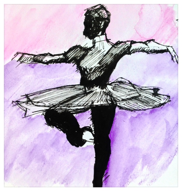 Again just messing around with the Ballerina idea. (I was going to say messing around with a ballerina but I thought better of it) This time by adding a bit of water colour – Degas watch out (ha ha)