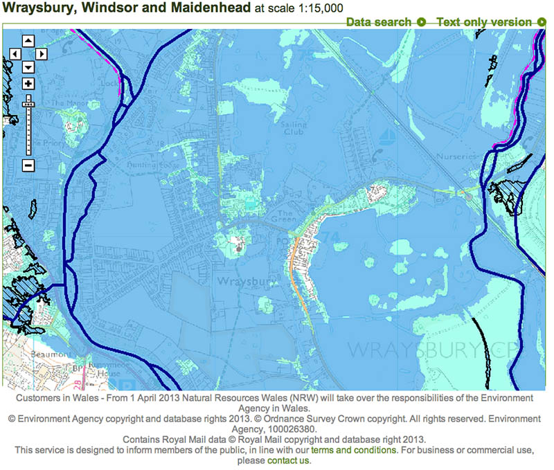 Burrowbridge and the Somerset levels have now been replaced in the media spotlight by Wraysbury, outside Windsor and just to the west of London. Many frustrated and angry members of the public have been only too happy to tell their stories to the media about their plight and fears. All of this is understandable but examination of the Flood Map tells its own story: