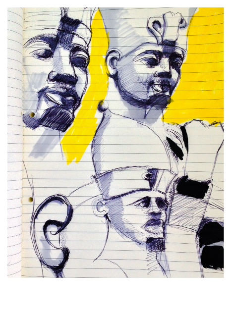 I cant stop myself this morning making sketches of Amenhotep III. Probably only one of them is approaching what I would consider a likeness but that doesn’t matter at the moment – this may well change but for now I’m just enjoying rifting on a theme.