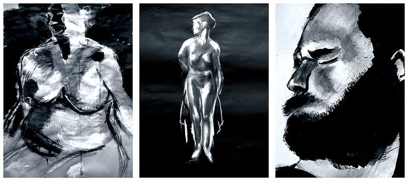 Some assorted ink and chalk sketches – for some reason they are all looking left.