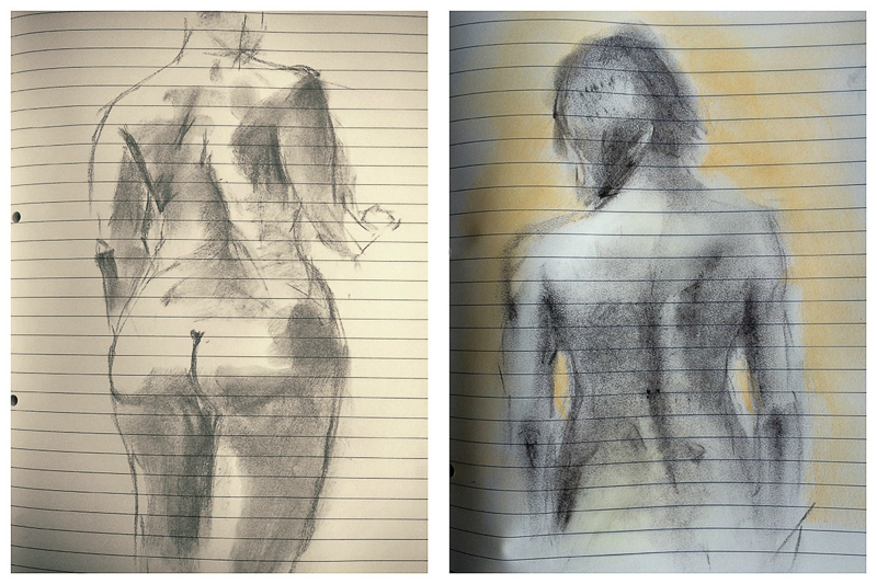 On this point of improvement I have found that the Moore Rodin exhibition that I saw yesterday has seeped into my sub conscious in such a way as to effect how I approach a drawing. These two sketches I made this morning illustrate what I am talking about. Only time will tell what long term effect it may have one me.