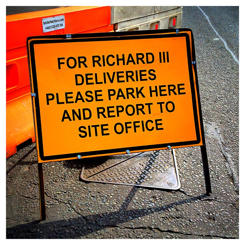 Whilst walking around Leicester this morning I came across this sign which made me chuckle. The site of the world’s most famous car park is now the centre of frantic activity as the visitors centre takes shape. Whilst across the road the Cathedral is getting a major face lift which will befit the final resting place of one of the best known monarchs. Anyone would think that a State funeral is going to happen soon.
