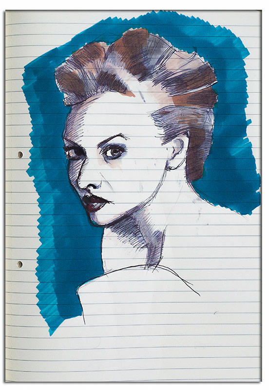 This brings me to the drawing. I have no idea why but I just don’t seem to be able to portray beautiful young woman to my own satisfaction. Perhaps I shouldn’t have used ink as the medium for this drawing but I did and the result was disappointing.