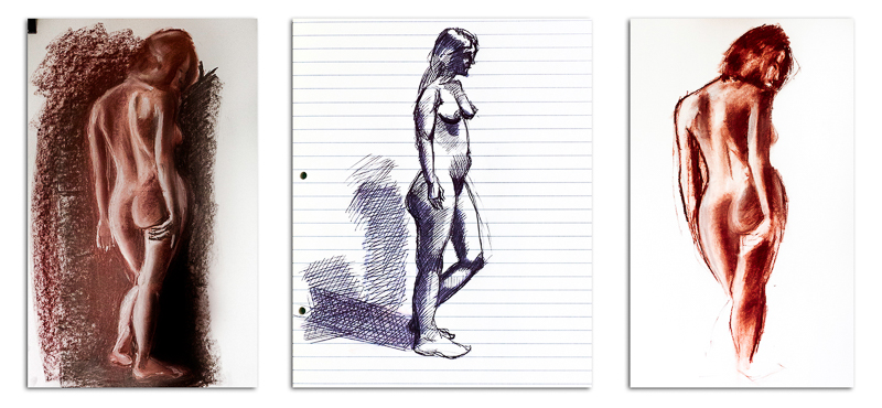 On the subject of nudes I have a had a very frustrating weekend. Some of the sketches have worked out but when I tried to make a large scale drawing I failed. The only positive I can take from this is that I know why the drawing failed – the only problem is that this is a recurring problem which I just don’t seem to have come with a solution.