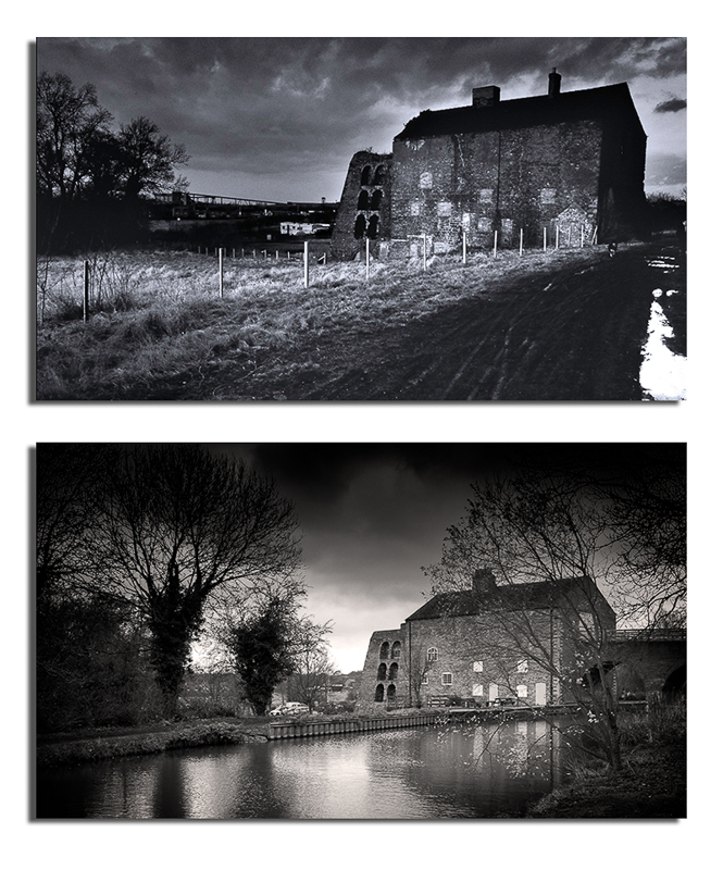 So I got the furnace and realised that the canal had also robbed me of the opportunity of standing in the same place to take the photograph as I would require divine powers or a boat. As I had neither I had to make do with a rough approximation.