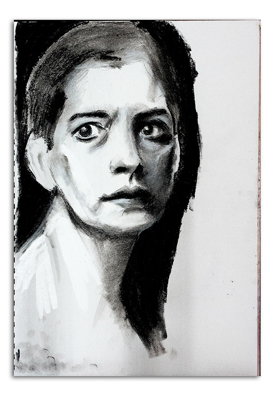 After an absence of a few weeks I am finally back at my easel – this time with pierre noir and grey tone pastels.   Oh it feels good to be back.