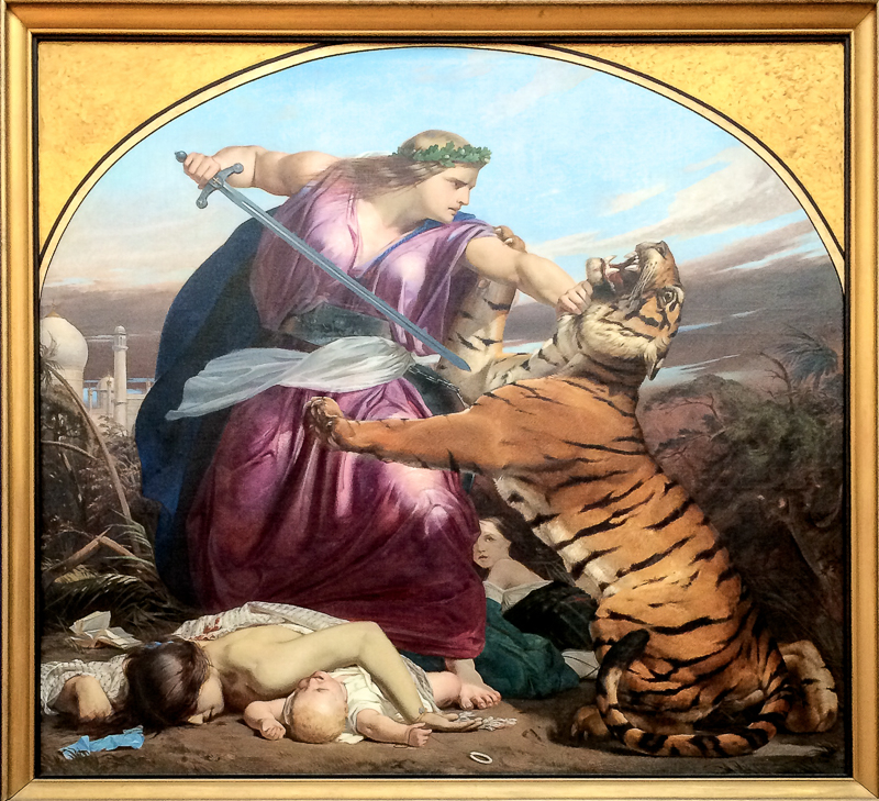 Every now and then the past comes back to haunt – this is what happened to me this afternoon at Leeds Art Gallery. In general the gallery is a wonderful place to visit full of different types of visual art. However one of the galleries concentrates on high Victorian art and is full of the usual suspects but the painting above dominates the room. On the face of it is yet another allegorical Victorian painting depicting some mythical story which was intending to portray some moral lesson to the viewers. However, the name of the painting, Retribution, should start to make the modern viewer a little uneasy. The accompanying note explains all.