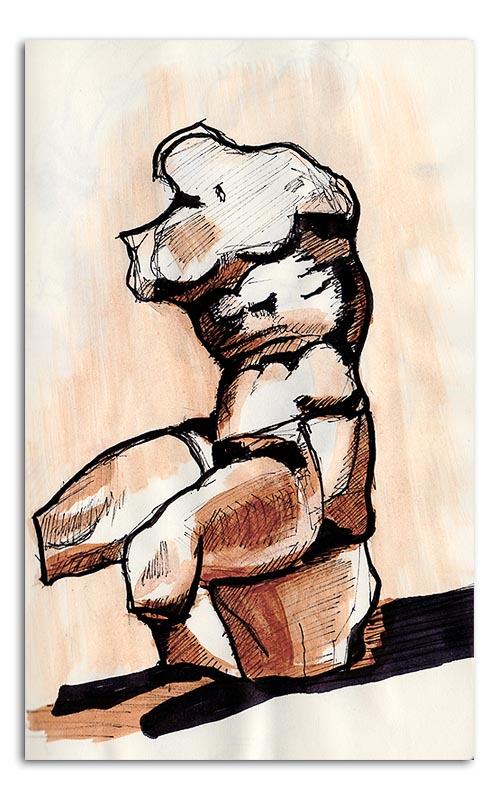 Over the past week I have visited The Hepworth and the Ashmolean Museum which are two of the finest, in their own way, art institutions in the country. Whilst there I found myself sketching classical male characters.