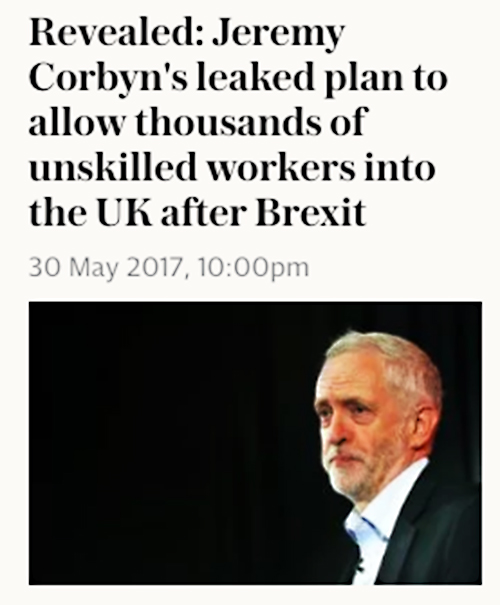 The first answer of course is nowhere – they may just stay at home. However, if we assume they are going to vote where will they go to? To try and answer this you have to look at what Labour and the Conservative have said about issues that UKIP voters may well be interested in: Brexit, Immigration and Jeremy Corbyn. If these are the three questions that the UKIP voters are considering then you would have to suggest that they will move more likely to the Conservatives than Labour as they are the bedrock of their campaign. On top of this if there is anything like a Lib Dem revival it may well take the votes from the Labour party than the Conservatives although the Brexit vote also have a factor. Just to reinforce the importance being placed on immigration control this is the headline in today’s Daily Telegraph. It doesn’t take too much imagination to suggest who this might be wanting to influence.
