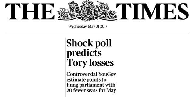 Is this true? Can Jeremy Corbyn actually improve Labour’s performance so much that it leads to a hung Parliament and he an unlikely Prime Minister leading a coalition government? Well if you believe this headline then yes is the answer. However, if you take the time to read the article you will see that what pollsters have actually said is that this result is at one end of a possible range of results the other is that the Conservatives have around 370 seats. In other words the headline is screaming about a statistical outlier. You have to wonder why this was the lead headline? It is very easy to suggest that this serves a purpose of scaring potential Conservative voters so much as they will get out and vote to ensure that Jeremy Corbyn is not the next Prime Minister. After All The Times is a Murdoch paper.