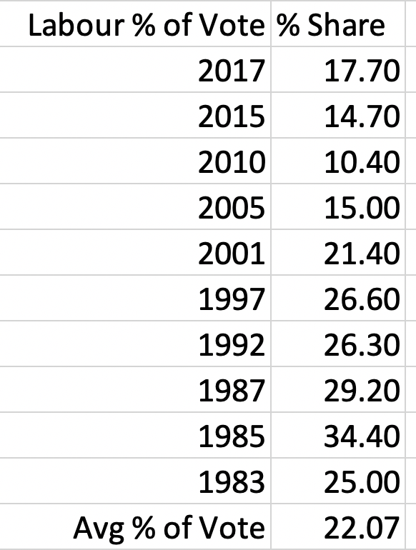 Of course there may have been boundary changes during this time that might have affected the tradition Labour vote in the constituency. Nonetheless they have always managed double figures. This time they only got 5.3% of the vote – just under half of the Brexit Party vote. It is even less than the European Election vote of 7.38% for Powys as a whole. Even the Peterborough win saw the Labour share of the vote fall by 17.16 % of the vote. It doesn’t matter how much spin you might want to put on the recent Labour performance it isn’t very good, especially given the state of the Conservative party during the same period.