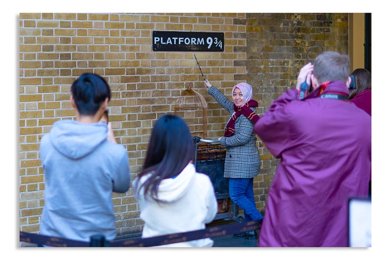 These were platforms 9 and 10 at Kings Cross station and for many millions people around the world only means one thing – the location of platform 9 3/4 and the Hogwarts’ Express. As soon as this is pointed out the three individuals in the first picture start to take on a life of their own – are they Ministry Men? Perhaps they work at Hogwarts itself and are awaiting the arrival of students after the winter break – it was January and who knows when the new term starts? Perhaps they are … well I’m sure you can fill in the blanks yourself.