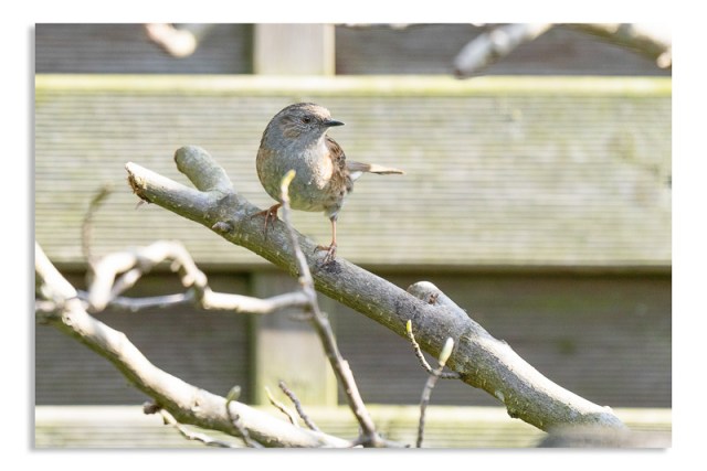 Whilst this woodland setting offers great opportunities for nature it also means that the small birds also have to be on the lookout all the time for predators. The most successful/dangerous one is the local cat population who instinctively take many birds but then don’t really know what to do with them. However, there are other predators that really know what to do with their kills – they too have chicks to feed. The top of these predators is the Sparrowhawk which I was able to briefly capture as it zipped through the gap between the houses.