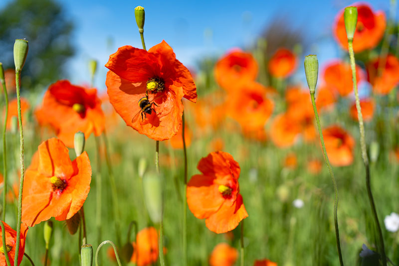One of the many false claims made about photography is that the camera never lies. This is true but photographers do and modern digital technology is a co conspirator in many such falsehoods. The poppy bed where I have captured the red poppies over the past few days would like to pretend that it is in the middle of the countryside and I have helped this misrepresentation.
