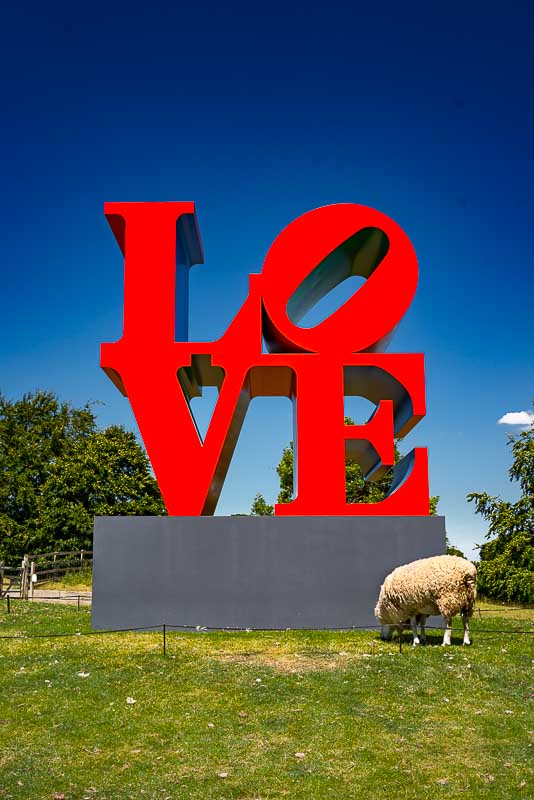 Corny I know but it does seem appropriate for the new Robert Indiana exhibition at the Yorkshire Sculpture Park. Before I visited the exhibition all I knew about Indiana’s work was the sculpture from 55th and 6th Street in Manhattan, New York. I now know a lot more which is a credit to the curators at the YSP.