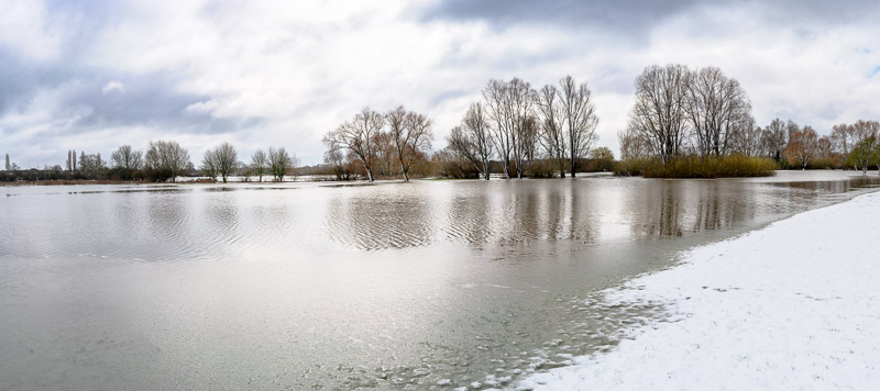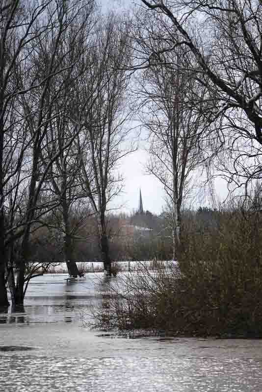 This morning I walked down to the park expecting a snowy wonderland instead I found a land of water and the worst flooding we’ve suffered this winter (and this before the runoff from last nights snow hits the rivers.) It could go up another few centimetres. Fortunately, we live a good 10 metres above the flood waters so we’re fine. There are many house further downstream that might not be so lucky, although this is why we flood every year as a protection for those houses. Other places around the country won’t be so lucky.