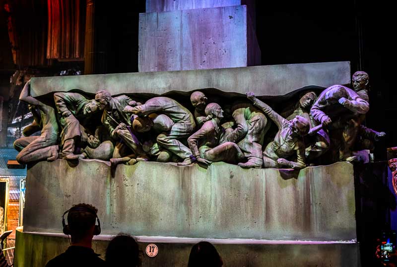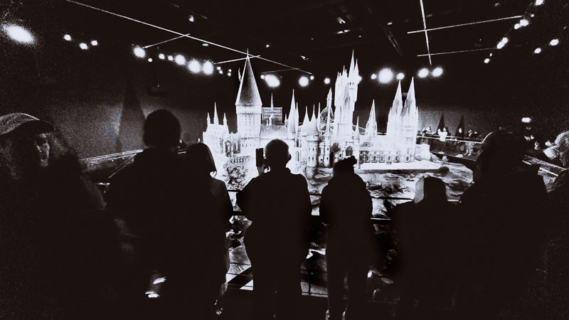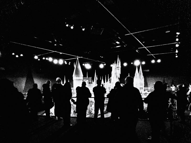 One of the problems that any photographer faces when trying to capture images in the Harry Potter Studio Tour is light or the lack of it. Fortunately, we live in a world where digital cameras provide opportunities that were not there when the films were made as they were recorded on, well, film. To reinforce this there is a huge still from the production in the Backlot Cafe where Michael Gambon is being filmed in the great hall delivering a speech from the podium. The image however shows the production crew who were watching as he delivered his lines including an Arri movie camera with a 1000 foot reel of film. The image was probably captured c2004/5 when digital was only really starting to enter major movie production so film, which is unlikely to have had an ISO or no more than 200, was the medium they recorded the images on. Hence massive lighting rigs etc. a lot of light was required to ensure the image was captured just the way that the DP wanted.