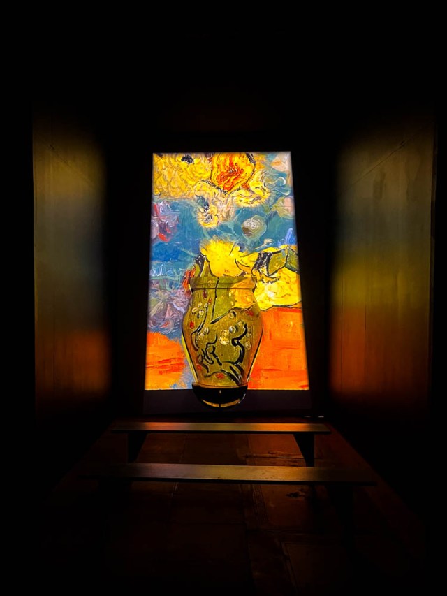 I know, I know, I don’t like the iPhone camera or rather what the software does with the images captured. But when the iPhone is the only camera you have with you then you have to make the best of a bad job. Actually this make it sound like I was suddenly transported into this strange lightshow unprepared but that wasn’t the case at all. We had planned to see the Van Gogh: The Immersive Experience at All Saints church in Leicester for a couple of days so I could have taken a better camera – but I didn’t (what does that say about me?). So I can’t gripe about the camera but I will anyway – as anyone who might read the above will see.