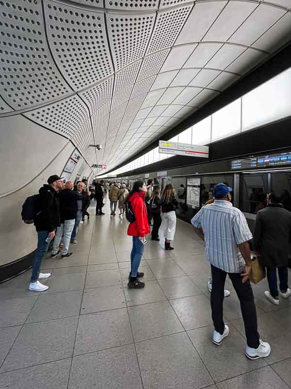 Canary Wharf is the antithesis to central London and the Liz Line station is just the latest example of this. The station was created in one of the old docks and is now a five storey office block/shopping mall. Everything is shiny and brand new – very much in keeping with keeping everything else on this man made temple to high finance and greed. It is Gordon Gekko on the banks of the Thames in a way that the City of London just isn’t.