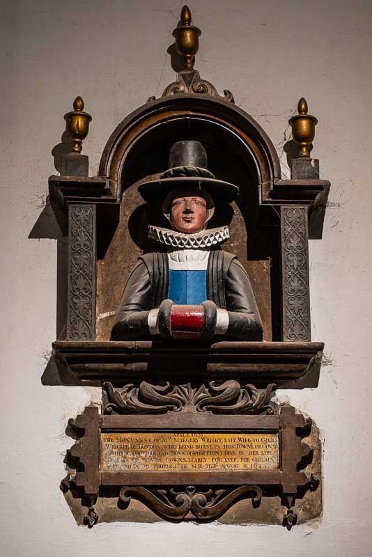 In England I think we’re just a little too accepting of all the history around us, take the memorial to Margary Wright as an example. She appears a good upstanding member of society who after her death a fine little memorial was placed on the wall of her local church. Nothing too unusual about that until you see the date when she died – 1623. Now if you are an a US citizen you would probably be aware that this was just 2 years after the Mayflower pilgrims landed at Plymouth rock. So if this were in the States a great deal would have been made of the monument, here it just gathers dust in the corner of provincial church.