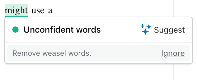 My frustration with our AI overlord continues. It seems not to understand why someone might use a comma. Also it must have been trained on American text because it really doesn’t like the use of language that could be described as ‘Unconfident’ or weasel words: