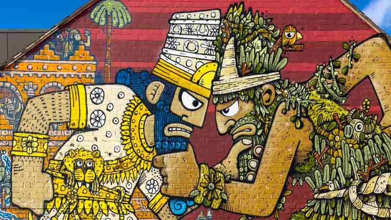 A long time ago in a galaxy far far away, I spent a lot of time walking the streets of Leicester. Yesterday, with my good friend, I revisited old haunts. Things have changed a little: the place is a lot cleaner for one thing. Also, many of the walls of the cultural quarter have just had fresh murals painted on them. I don’t remember what the connection is between Gilgamesh and Enkidu and Leicester is. Matters not the mural is really quite impressive.
