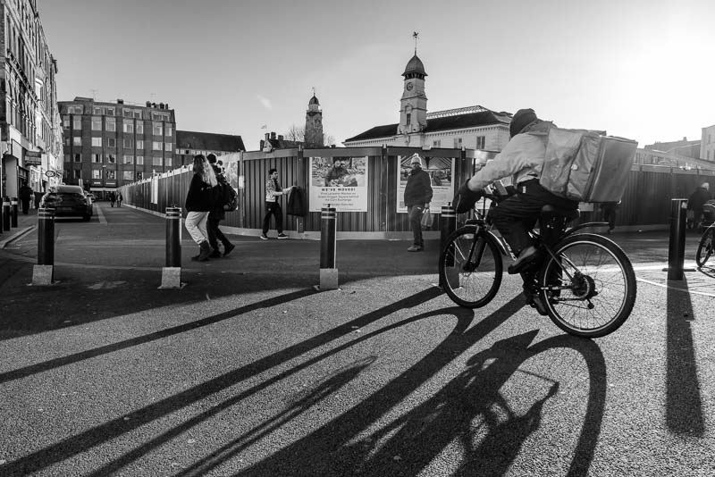 Whilst I was crouching down to get the low angle, please don’t try and imagine this, all I could hear was a Police Community Service Officer having a argument on her phone with someone. It was probably some petty disagreement, I don’t think it was work related. Whatever the cause of this conversation her loud Leicester voice serenaded the passing people. I doubt few were there long enough to listen. Oh the joys of street photography.
