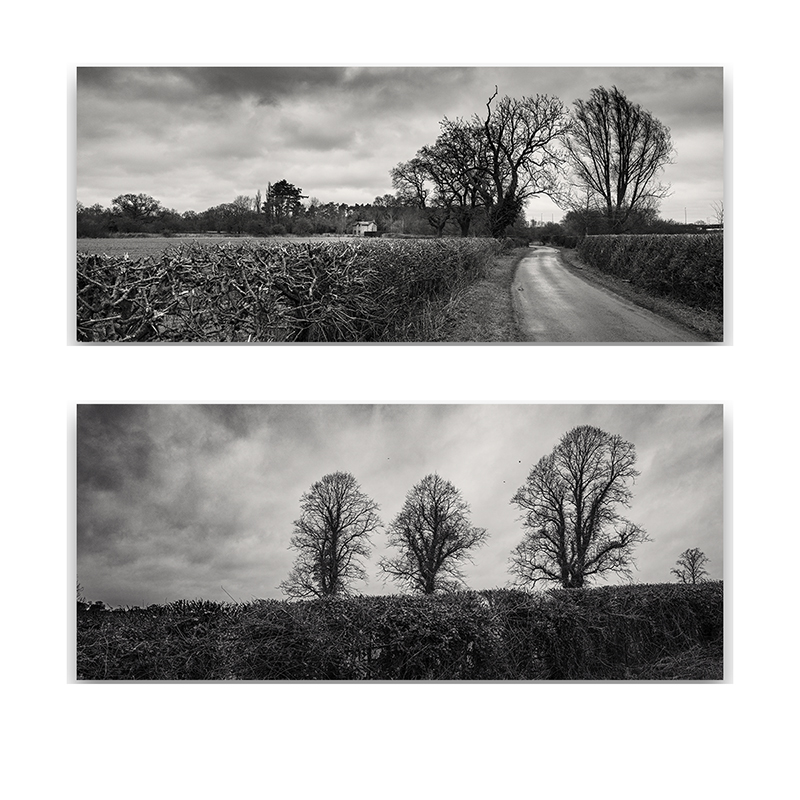 Cold, damp and grey. The perfect conditions to capture some images. As it happens it was. For five years, my good friend and I have visited all the villages in Harborough District council. We create images that reflect what we have seen. Of course that has required some solo visits. Today was one of those days. My mission was to capture the edges of the district. The first was at Highcross on the Fosse Way. Here two counties, three district councils and two Roman roads meet.