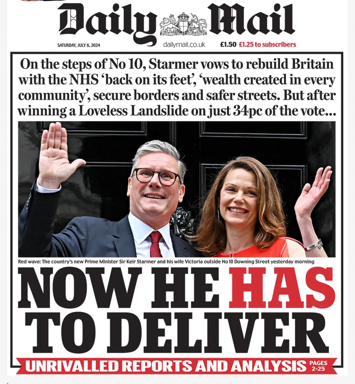 We live in a volatile world and now it would seem that that volatility is matched by the British electors behaviour when they vote. I have no idea what will happen between now and 2029 but I doubt the percentage of the vote Labour received in 2024 will have much influence at the next general Election.