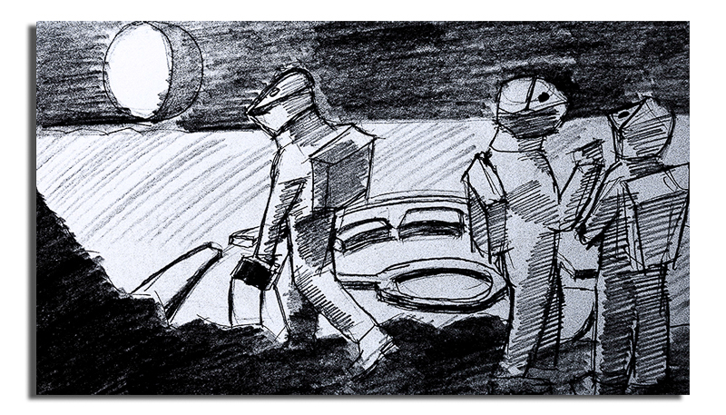 One of the joys of discovering that should I set my mind to it I can make a reasonable facsimile of most things on paper. (Note to Editors – the word reasonable is used very liberally here). Today my thoughts are once more with my all time favourite movie – 2001 a space odyssey and before crank up the blu-ray player to enjoy the movie once more I thought I would make a little sketch based on some of the matchless special effects. To add to the atmosphere as I write this I have the Blue Danube playing in the background.
